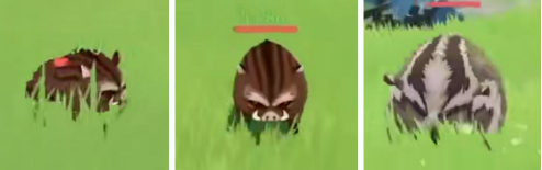 从左到右依次为:小野林猪(50分)、野林猪(100分)、雪猪(300分)。