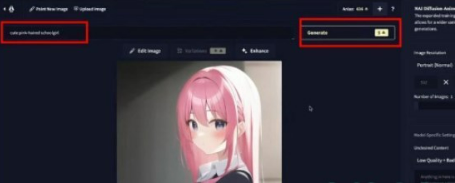 1、输入文字,例如说:Student girl with cute pink hair,在右侧点击cenerate即可生成图像;