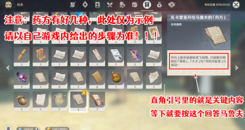 注意:再再再次强调,药方步骤要以自己游戏里遇到的为准,每个人遇到的可能是不一样的!