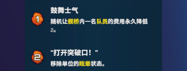 鼓舞士气:花费1点烬石可以让舰桥里的随机一枚棋子费用降低2,显而易见的一个赚费技能。