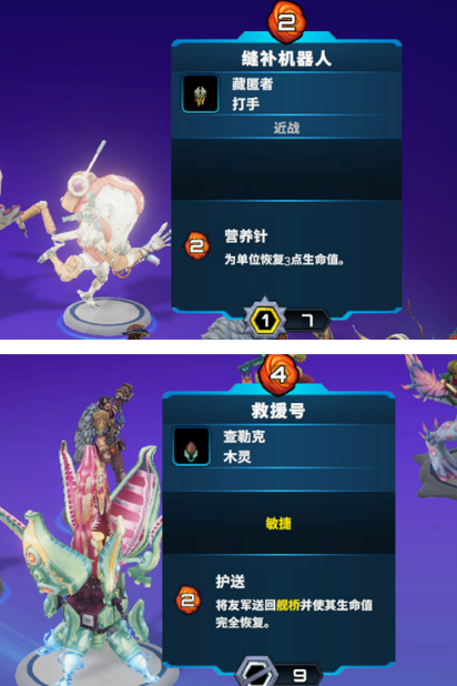 救援号和缝补机器人则是属于同一个类型的棋子,增加阵容的续航,并且本身的费用只有2,在被减费之后可以直接0费入场,非常灵活。