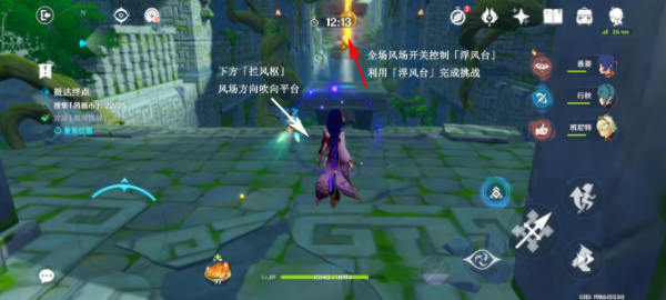 8、关闭全场风场,先下去调整「拦风枢」,利用全场风场开关控制「浮风台」上下移动