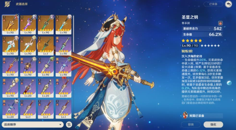 2、专武--圣显之钥可以为妮露提供86.2%的生命加成,自身400左右的精通加成和队友140左右的精通加成,与其他武器相比,对全队伤害提升十分明显。