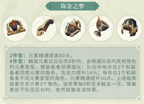 适配圣遗物:[饰金4] > [如雷4]