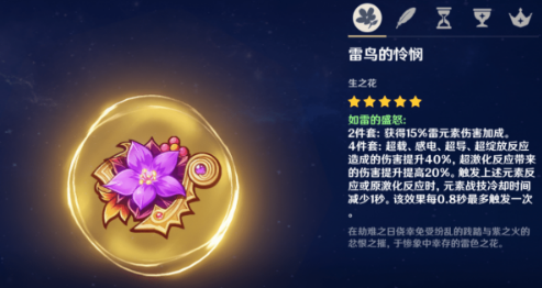 如雷的盛怒:操作上限高,充能压力小。在高频触发元素战技的条件下,间接增伤将会无比可观。但是需要搭配多种反应才能比较好得利用该套圣遗物,纯粹的雷元素则几乎无较好增益。