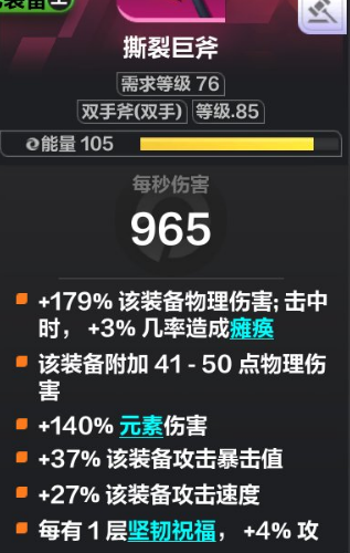 这件装给提供斩击的激励提升,而且获得范围效果和额外伤害,必备!