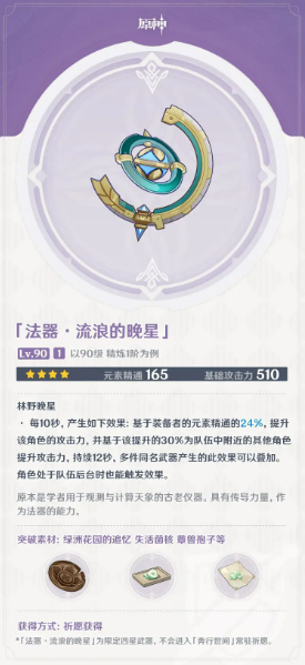 原神流浪的晚星适合谁?流浪的晚星怎么获得?