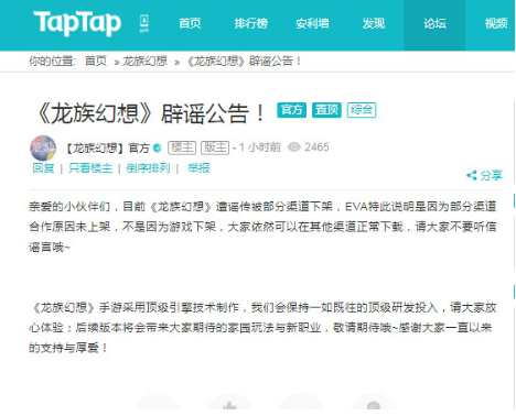 亲爱龙族幻想为什么下架了的小伙伴们,目前《龙族幻想》遭遇谣传被部分渠道下架,EVA特此说明是因为部分渠道合作原因未上架,不是因为游戏下架,大家依然可以在其他渠道正常下载,还请大家不要听信谣言!
