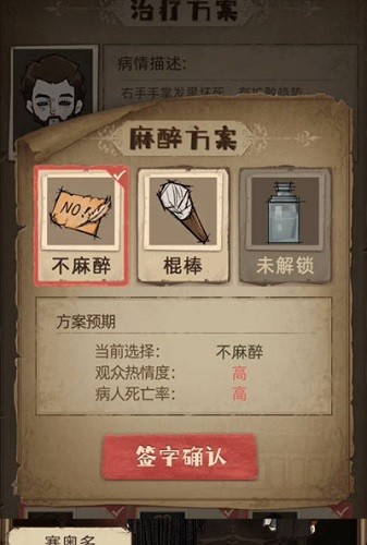 如果病人血量够可以不用缝合还是用草药好,如果出现病人死亡的现象别急,直接回到桌面后台关闭重新进行这一天