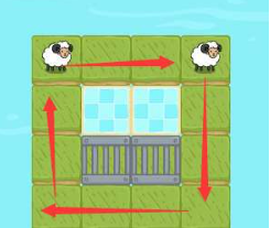 2、然后将一直羊滑动到另一只羊的旁边,然后另一只羊绕圈移动到另一侧,如图所示。