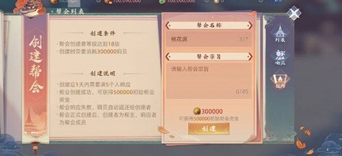 1:创建帮会有两个先决条件,一个是等级达到十八级,第二个就是消耗三十万的铜币;