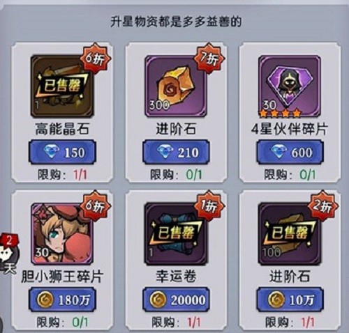 1:商店必买是一折的进阶石,金币买经验,还有就是除了一切可以用金币买的东西,再有就是150砖石的高抽和灵物卷轴;