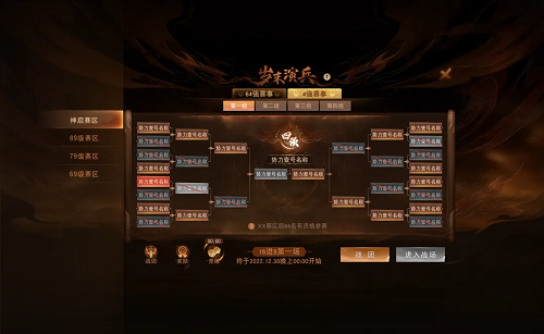 岁末演兵玩法将在天下一统和新生大荒大区分别进行,两个大区内又将分为神启赛区、89级赛区、79级赛区(仅限天下一统大区)和69级赛区开展对决比拼。
