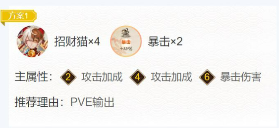方案一:招财猫×4,暴击×2