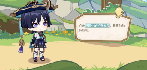 1、进入活动以后,我们根据任务要求,【点击画面中的特殊物品】,看看他的反应吧。
