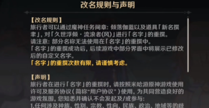 2、看完剧情以后我们可以选择为流浪者进行改名,不过需要先浏览一遍改名声明。(改名的注意事项,以及不能修改的名字限制)