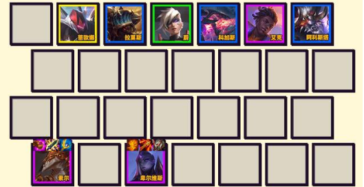 首先我们要确定阵容英雄的选择,英雄选择分别是厄斐琉斯+阿克尚+露露+格温+狗熊+稻草人+艾翁+戴安娜+提莫。组成羁绊为灵罗娃娃,大魔王,三复生,三秘术,二黑夜使者,二恶魔,二游侠,二神谕。
