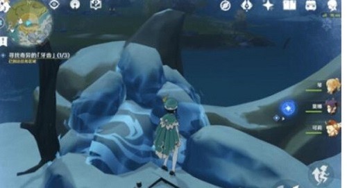 1:杜林心脏需要玩家在龙脊雪山中找到奇异的牙齿,具体的位置如下图所示,其中有一处是被冰块覆盖住了,要去河对岸找到一个道具来打碎这个冰块,这些牙齿的位置都是发光的;