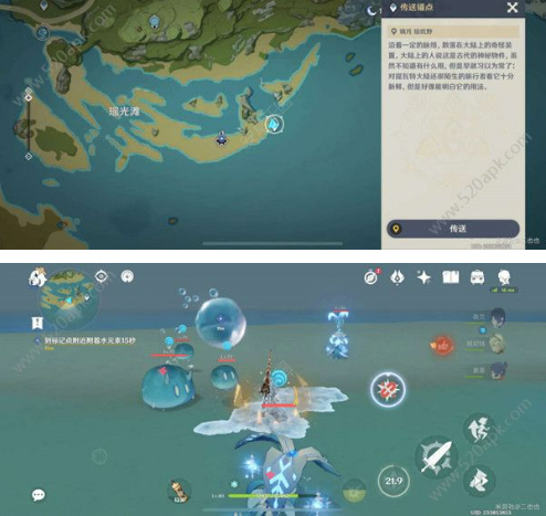 3、传送到瑶光滩,击杀水史莱姆,附着水元素。