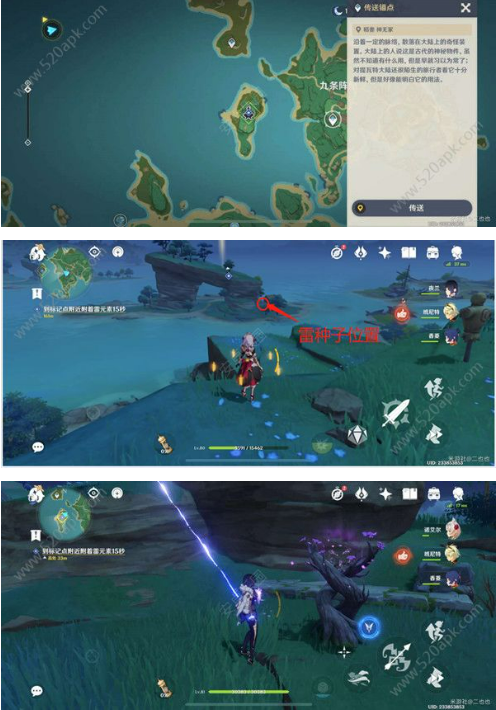 4、传送到九条针屋,召唤雷种子,附着雷元素。