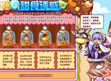 1、【甜食诱惑】活动每日有6次补充能量的机会,注意活动提示的温度,从而挑选最佳的甜食进行补充能量,使用最佳甜食获得的能量值最多。
