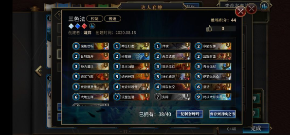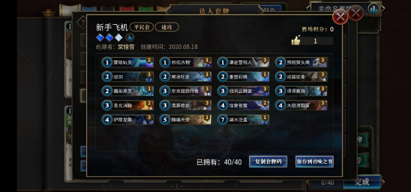 总结一下,前期没卡,打副本啥的只能速战速决,卡组用中低费用随从为主力,快速展开稳固场面,法术神器控场赚取优势。