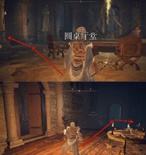 当然也可以从赐福点返回跳到悬崖这里,击败这里的偷袭敌人之后,沿着往下跳的位置右侧的路走
