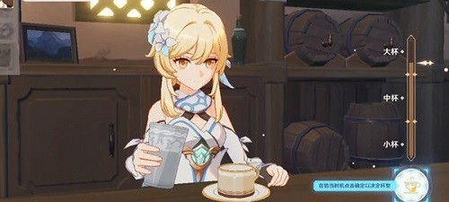 这个活动其实很简单,我们需要根据游戏中的名称放入对应的材料,然后我们按照游戏中的提示,点击四个方向键进行搅拌,让这些配料充分的融化,最后我们在小杯,中杯,大杯中选择一个即可,需要按到一定的位置才可以的。