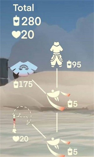 1:如图所示,这里有斗篷,工装裤,还有耳坠,兑换的价格都已经标注在图中了,工装裤的价格是95蜡烛,斗篷是175蜡烛,然后耳坠是20爱心;