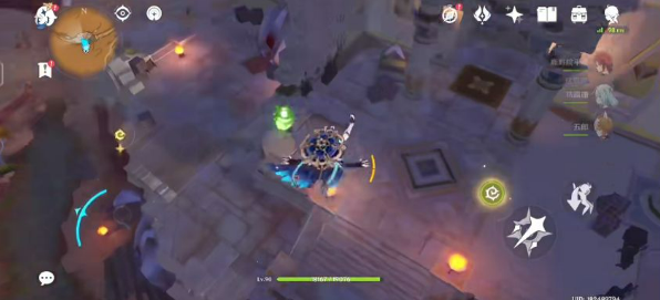 2、到达之后朝着小地方上方,也就是北方向直走,到了悬崖边就跳到下面的平台上,悬崖有点高,记得打开风之翼哦;