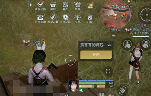 2、往左边的村庄走过去,发现一个孤零零的背包,打开获得藏宝图。