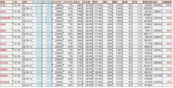 ①计算规则:武器为【精1苇海信标】、套装为【渡火4】、主词条为【攻火暴】、副词条为【18条词条双暴+6词条攻击+4词条生命】,计算角色在不同天赋等级的伤害期望。
