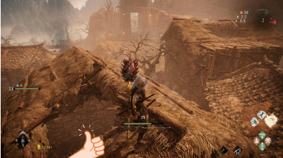 第一:村子门口上有一个进去后左边小道跳上台后再反过来跳屋顶跳过去