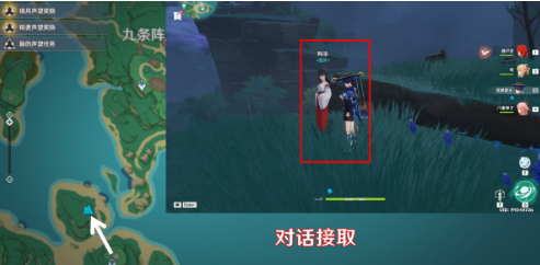1、传送至神像右边锚点,往西北方山坡走,在这里与巫女阿幸对话即可接取任务;