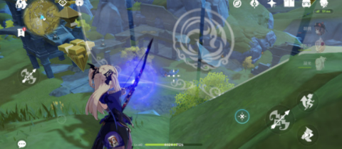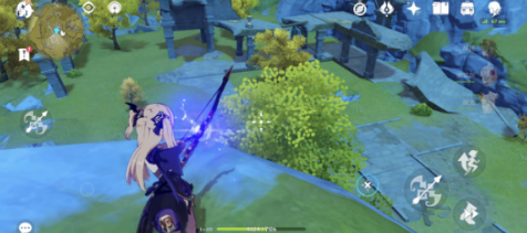 2、玩家先去这个最矮的山头,这个山头会有树遮挡,然后你对着遗迹守卫打两下,突然一个深渊法师就出现在你面前,此时切凝光,开屏障阻挡法师的泡泡攻击并破盾;