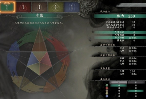 木方向加点一个是血量成长大,一比七的加成独步天下(土4其余3),二一个是增加气势防护,上面说到气势防护可以降低敌人对你的气势削减,减少被破防的情况。
