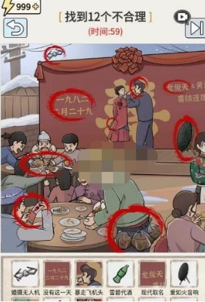 玩梗高手八二新婚日找到12个不合理答案是什么呢?八二新婚日如何通关?今天就让我们回到一九八二年的婚礼上吧,看看图中有哪些地方跟当年的情况不搭的,如果我们全部找出来的话就可以通关当前的这一关卡了!下面小编为大家带来玩梗高手八二新婚日找到12个不合理答案,一起来看看吧。