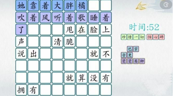 1,玩家是需要知道这一关是要将旁边的这些字放入进去组成一句完整的歌词。