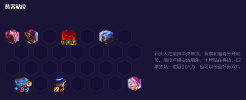 组成棋子:卢锡安、墨菲特、李青、崔斯特、普朗克、、伊泽瑞尔