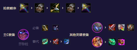 沙弥拉无尽轻语必备打伤害,科技枪一个是增加她的生存能力一个是可以给盖伦回血增加坦度。盖伦饮血救赎泰坦三见到能抗能打能恢复。出正常的龙牙反甲反而没有多大的作用。