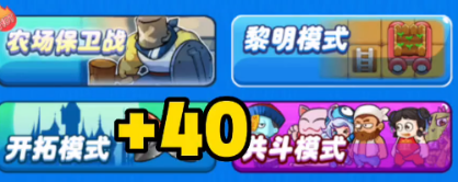 2、接着是联机模式,在农场保卫战里第一名加20第二名加15,第三名加10,第四名加五,黎明模式成功防守50波加40,开拓模式成功防守50波加40;