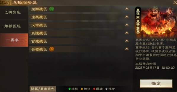 主公在登录界面可以查看自己所属的战区,同一个战区的所有服务器,在一赛季结算后会可以互相组队,组队完成后,同一战区的不同队伍会根据队伍实力进行匹配后,进入二赛季。