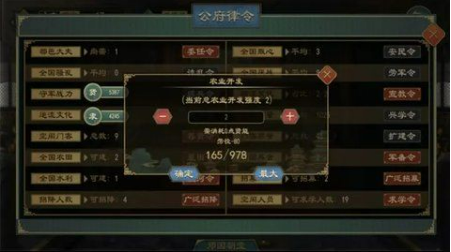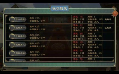 通过重订税收制度政策,可以提高国家税率,从而提高每年粮食的获取量。前期可以将税率适当调高至30%左右,在后续粮草结余较多的情况下再将其下调。