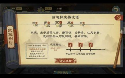 对于新手而言,开局选择农家流派是个不错的选择。该流派下的大部分政策都可以提高粮种产量、农业生产力等属性,从而提高财政收入。