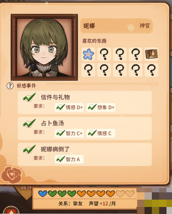 2、完成妮娜的三个好感事件,达到要求后月初家门口妮娜会来找女儿