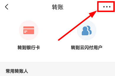 2、然后在在”转账“的功能界面的右上角的三个点图标进行点击。
