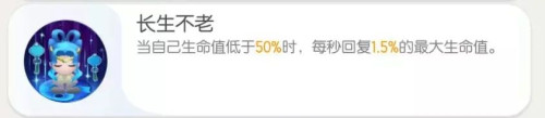 当自己生命值低于50%时,每秒回复15%的最大生命值。嫦娥作为一个法术输出,可以对队友进行辅助,也可以削弱对面的受治疗效果,同时还能够回复自身血量,可以说是很全能的一只妖灵,尤其是被动技能的奶量还不低。