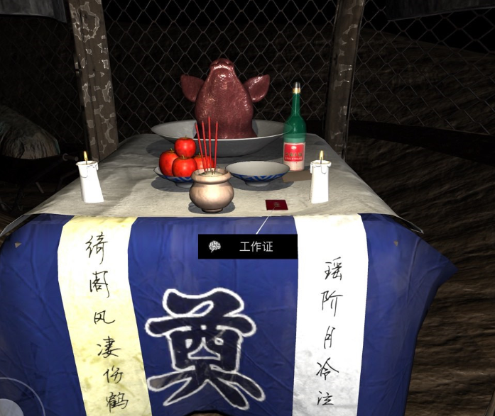 工作证这个线索位于出生地右边的灵堂上。