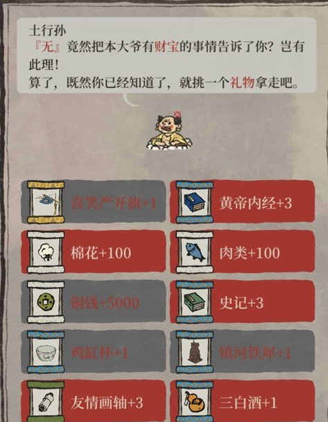 【土行孙】:土行孙有很多财宝,玩家找到他就可以获取一份礼物,而且他的礼物种类特别多,很容易就会挑花眼。