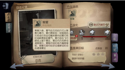 寒雾:雾气在杰克爪刃上聚集,累计一定程度后可以触发额外的雾刃,同时消耗积累的雾气。雾刃会在飞行的路径上留下雾区,杰克在雾区内移动会提高移速,减少雾隐冷却时间,同时求生者移动时也会遗落雾区。